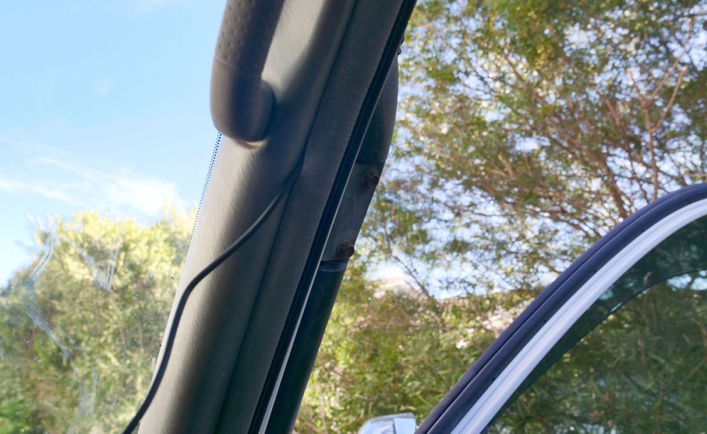 The kit includes all the wiring and brackets you need for installation. The cameras mount on two plastic clips that attach to the windows with 3 M-style adhesive strips. The first task is to select an appropriate place near the rearview mirror. A bit of trial and error before fixing the clip will ensure you can see the screen without impeding your line of sight.