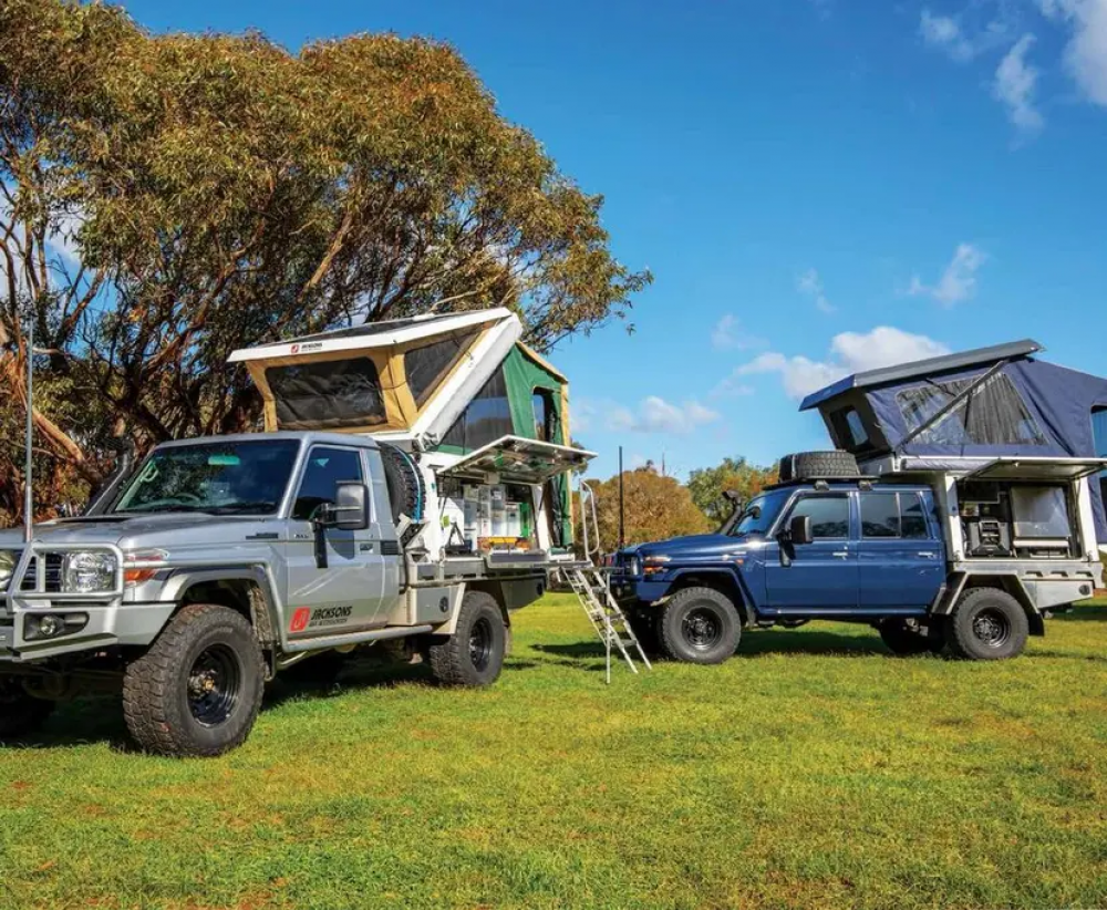 Australia is your oyster when touring in a Jacksons Carry Me Camper. A two-staged pop-up roof grants immediate access to a comfy mattress, side doors reveal bountiful, regimented storage, and a closer look unveils high-end electrical refinement.