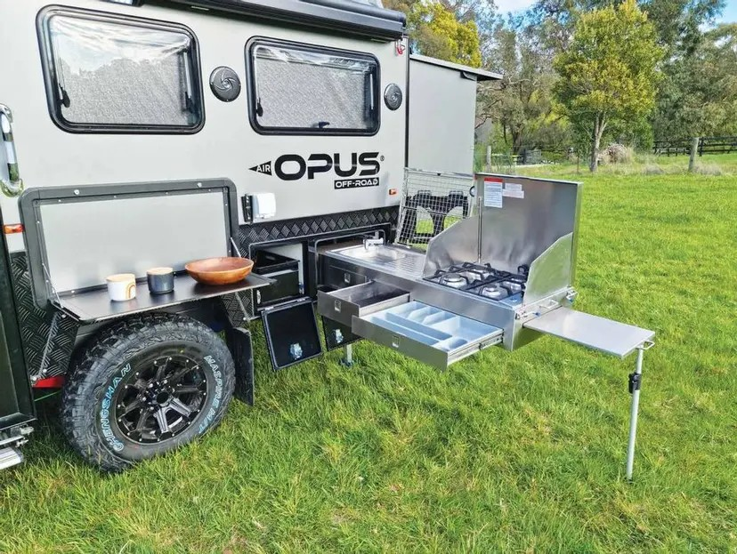 Opus have made a name for itself on the Aussie camper trailer market with its innovative inflatable tent sections. This easy set-up idea was inspired by the founders observing inflatable field hospitals while serving in the military.