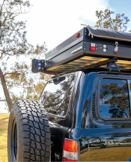 Picture this: a rooftop tent that goes up and down with the press of a button. When I was on the Gold Coast recently, the prospect of seeing such a tent in the flesh was too much, so I arranged to catch up with Bundutec Australia to see the South African-made Bundutop in action. I saw more than I’d bargained for — two tents, one on the white Land Rover Defender belonging to Ian, who runs Bundutec Australia, and the other on the black Land Cruiser of well-known personality Luke Eglin, who you might recognise from Married At First Sight.